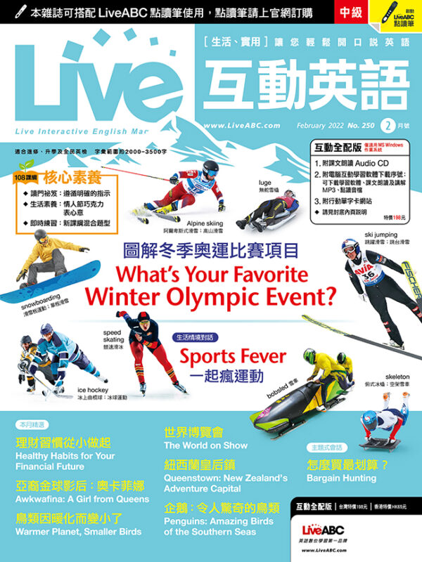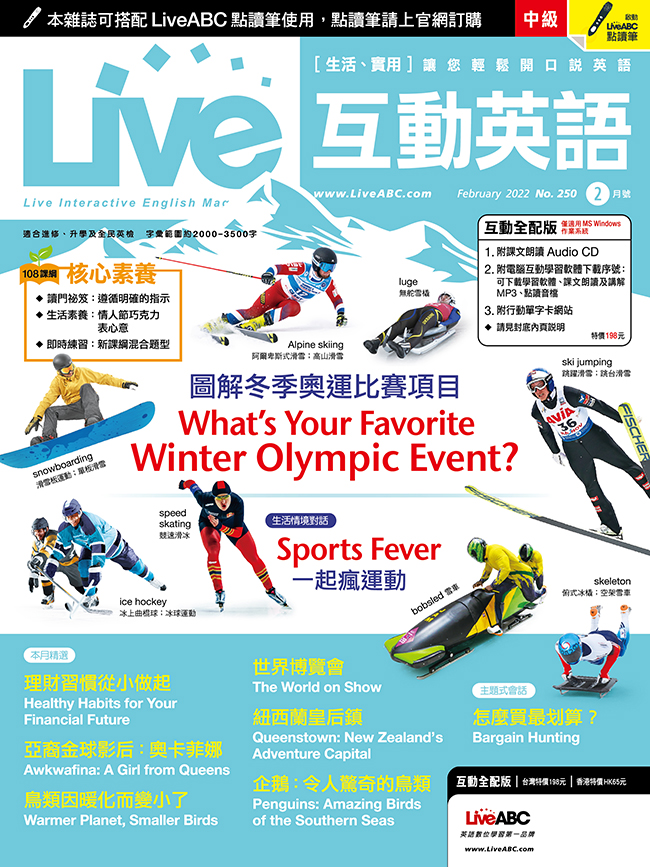 Live互動英語每月依照課程內容安排學習計畫表,幫您規劃學習進度,課程包含旅遊、文化、運動、新知、故事等豐富主題,以圖解、表列、學習影片等多元方式編寫,並分為「聽、說、讀、寫」四大學習教室,針對需求全方位教學,內容實用,幫助您能在各種場合用英語流利對答,讓您深刻體驗「情境式」英語學習的驚人效果,輕輕鬆鬆開口說英語。