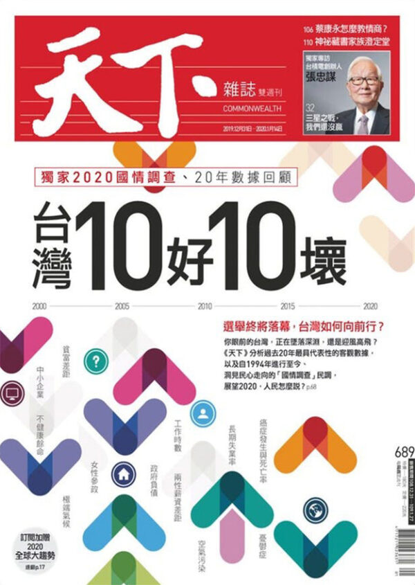 陪伴台灣走過四分之一個世紀的《天下》,曾被紐約時報譽為是反映「台灣經濟發展的縮影」。在逐漸喧鬧、聳動的媒體氛圍裡,《天下》堅持以深度、理性的報導風格,前瞻的視野,編輯團隊走遍全球,持續採訪國際政經領袖,引領讀者關注新趨勢與大議題,為國人打開一扇世界的窗,是品質最高、決策者最倚重的財經媒體。