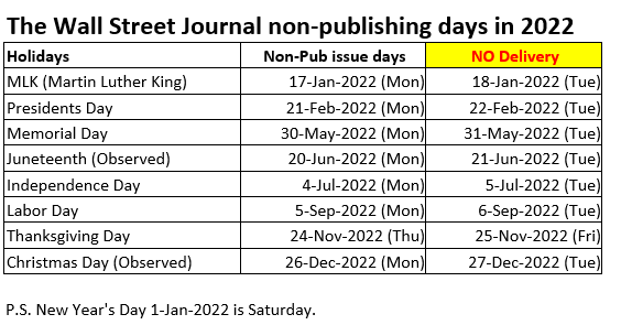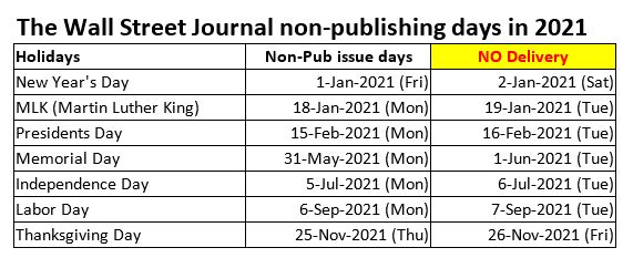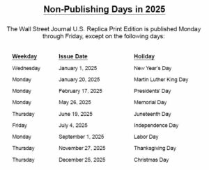 The Wall Street Journal Non-Publishing Calendar