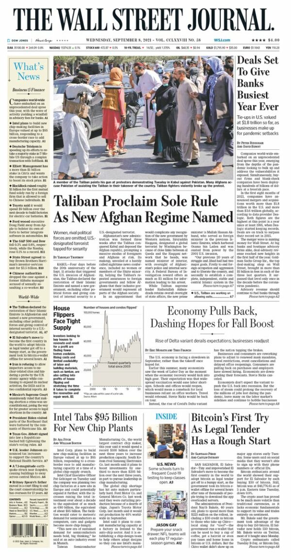 The long-established structure of the Journal includes complete tables reporting all financial and stock market activity for the preceding day as well as thorough reports and analyses of current business topics.