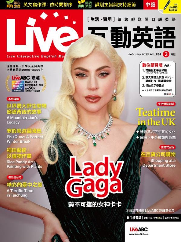 Live互動英語每月依照課程內容安排學習計畫表,幫您規劃學習進度,課程包含旅遊、文化、運動、新知、故事等豐富主題,以圖解、表列、學習影片等多元方式編寫,並分為「聽、說、讀、寫」四大學習教室,針對需求全方位教學,內容實用,幫助您能在各種場合用英語流利對答,讓您深刻體驗「情境式」英語學習的驚人效果,輕輕鬆鬆開口說英語。