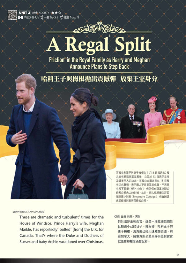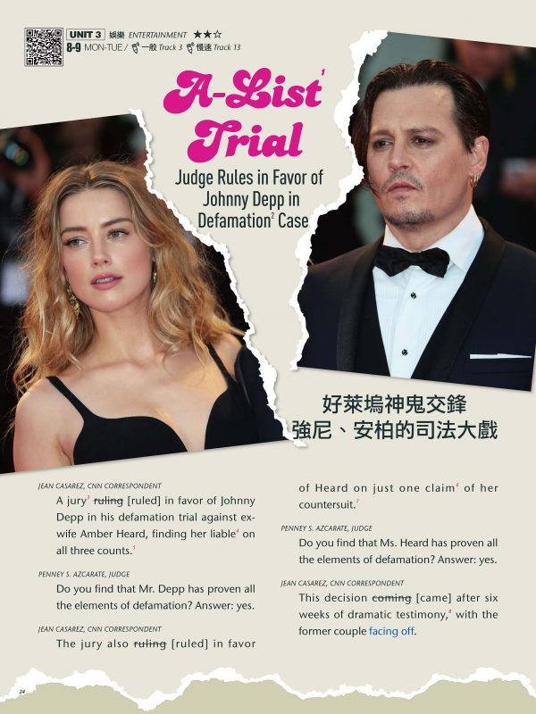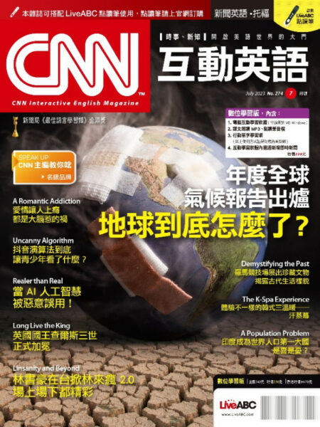 全球212個國家,超過十億人口收看的CNN,每天透23顆衛星24小時報導世界各地新聞,解析產業動態,《CNN互動英語》由CNN官方授權,每月從:全球新聞、亞洲世界新聞、商業新聞中心、娛樂線上等10大節目中,精選新聞內容,再分為政治、生活、財經、科技、娛樂、旅遊及人物等學習主題,由專業中、外編輯編寫,加入背景分析和學習重點,讓您確實掌握全球新聞動態,學好英語。