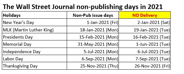 The Wall Street Journal Non-Publishing Calendar